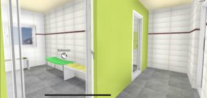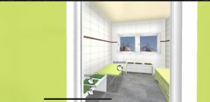 Es müssen neue Wände erstellt, Türen eigebaut, ein Durchbruch muss geschaffen werden. Leitungen müssen neu verlegt und angeschlossen werden und letztendlich muss alles gefliest werden.