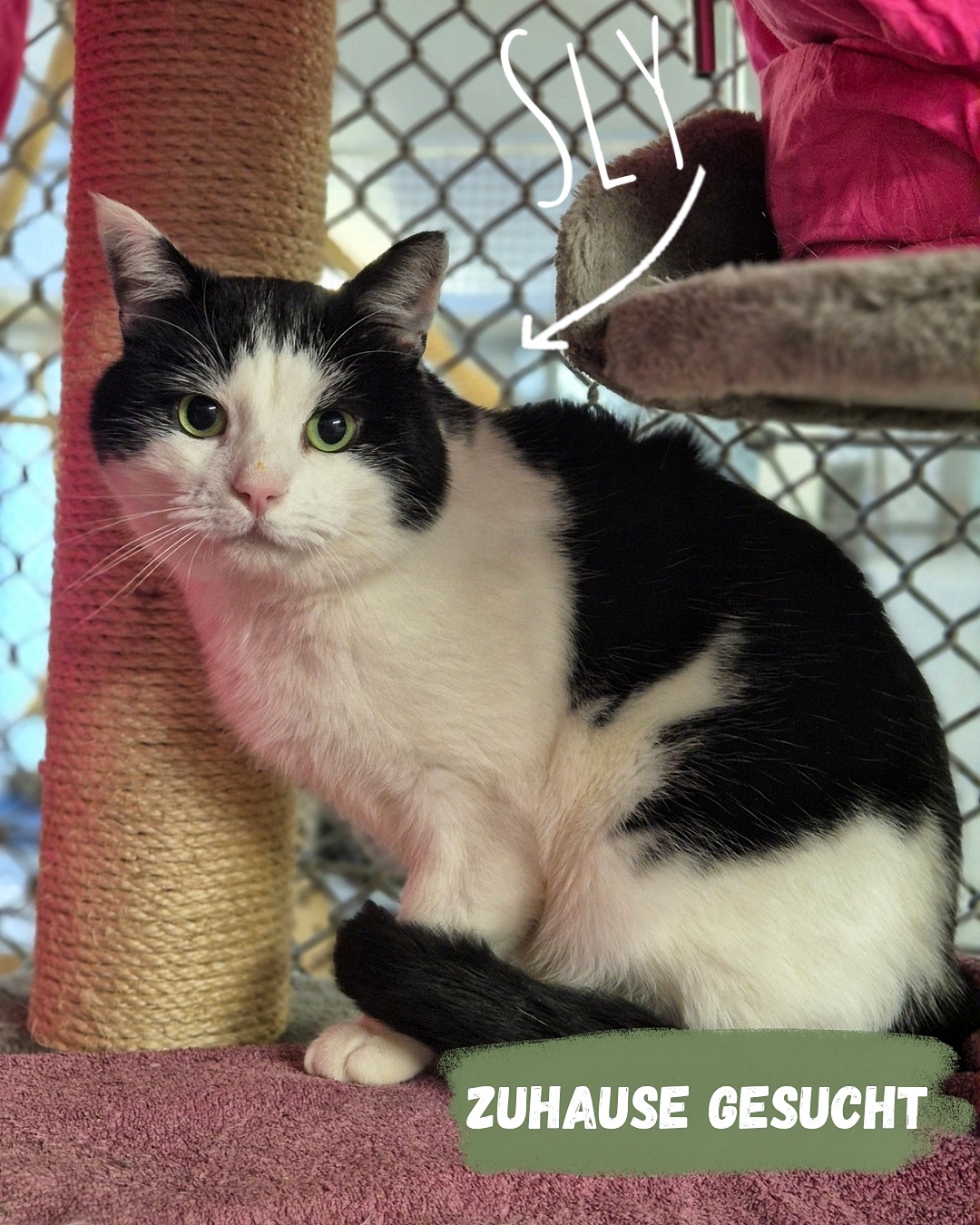 Er kam zu uns, da seine Familie keine Lust mehr auf ihn hatte und er als Freigänger lästig wurde. Er wurde sich bei eisigen Temperaturen selbst überlassen und kurz darauf hat sich die Familie die nächste Katze geholt, während Sly parallel nach einem warmen Unterschlupf suchte.