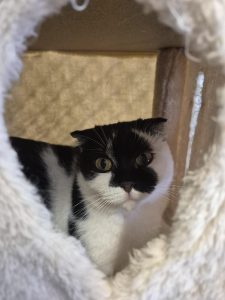 Cupcake ist ebenfalls sehr verschmust und freut sich über jede Aufmerksamkeit, aber sie liebt auch ihr Körbchen am Kratzbaum, indem sie Stunden drin schlafen kann.