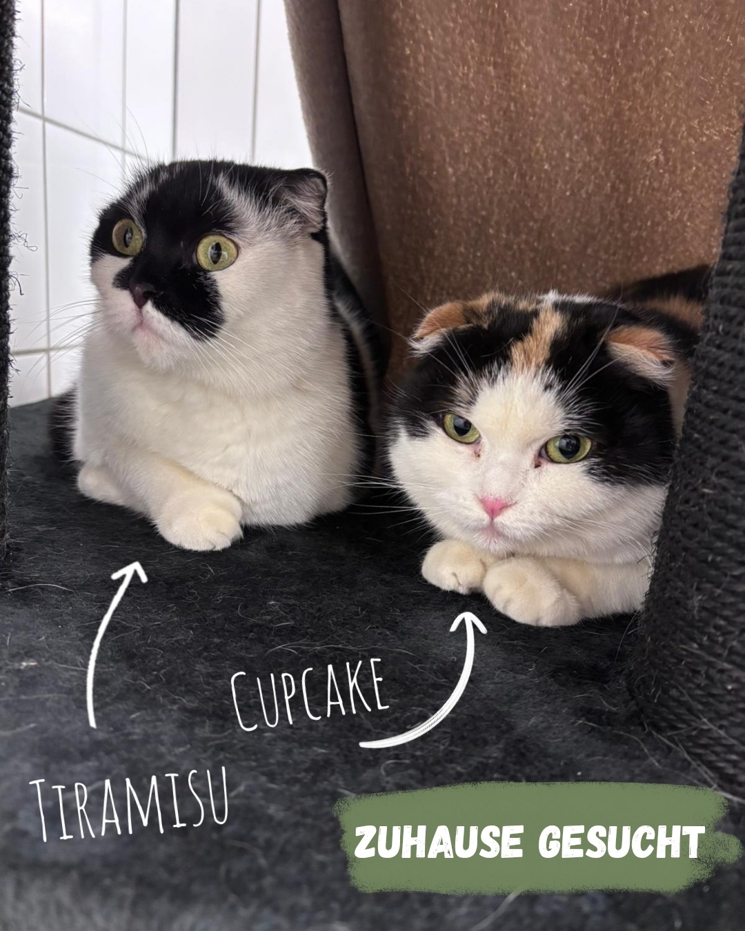 Die beiden Scottish Fold Damen Cupcake und Tiramizu kamen durch eine Sicherstellung mit 15 weiteren Katzen zu uns. Sie wurden bei uns aufgepäppelt, doch leider mussten wir schnell feststellen, dass ihre Rasse schon Spuren hinterlassen hat, denn Scottish Fold zählen zu den sogenannten Qualzuchten.