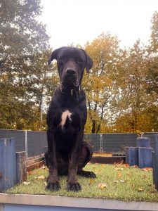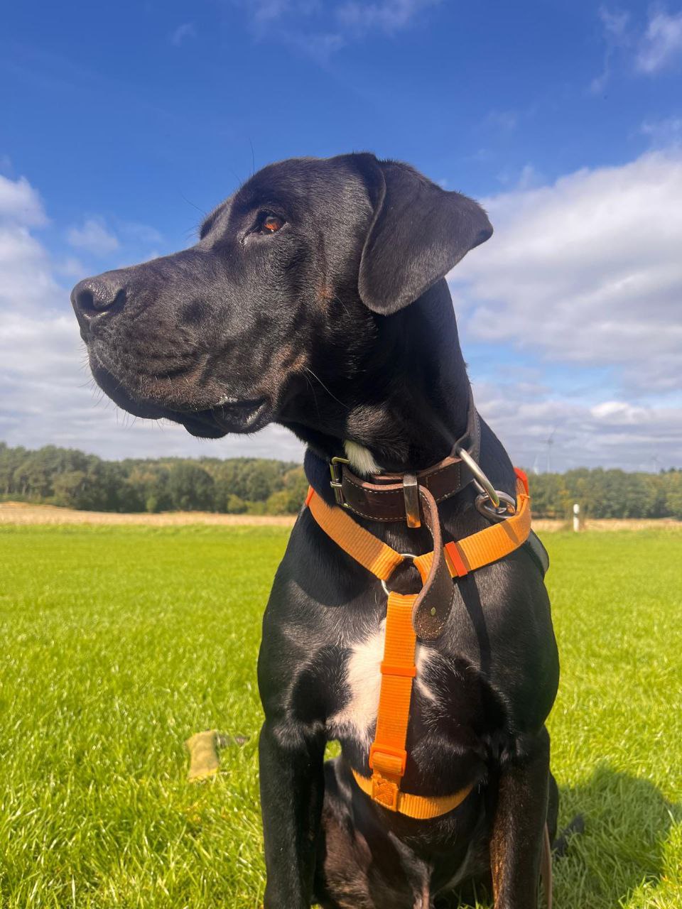 Hundebegegnungen sind für alle Beteiligten noch anstrengend, er macht aber im Training gute Fortschritte.